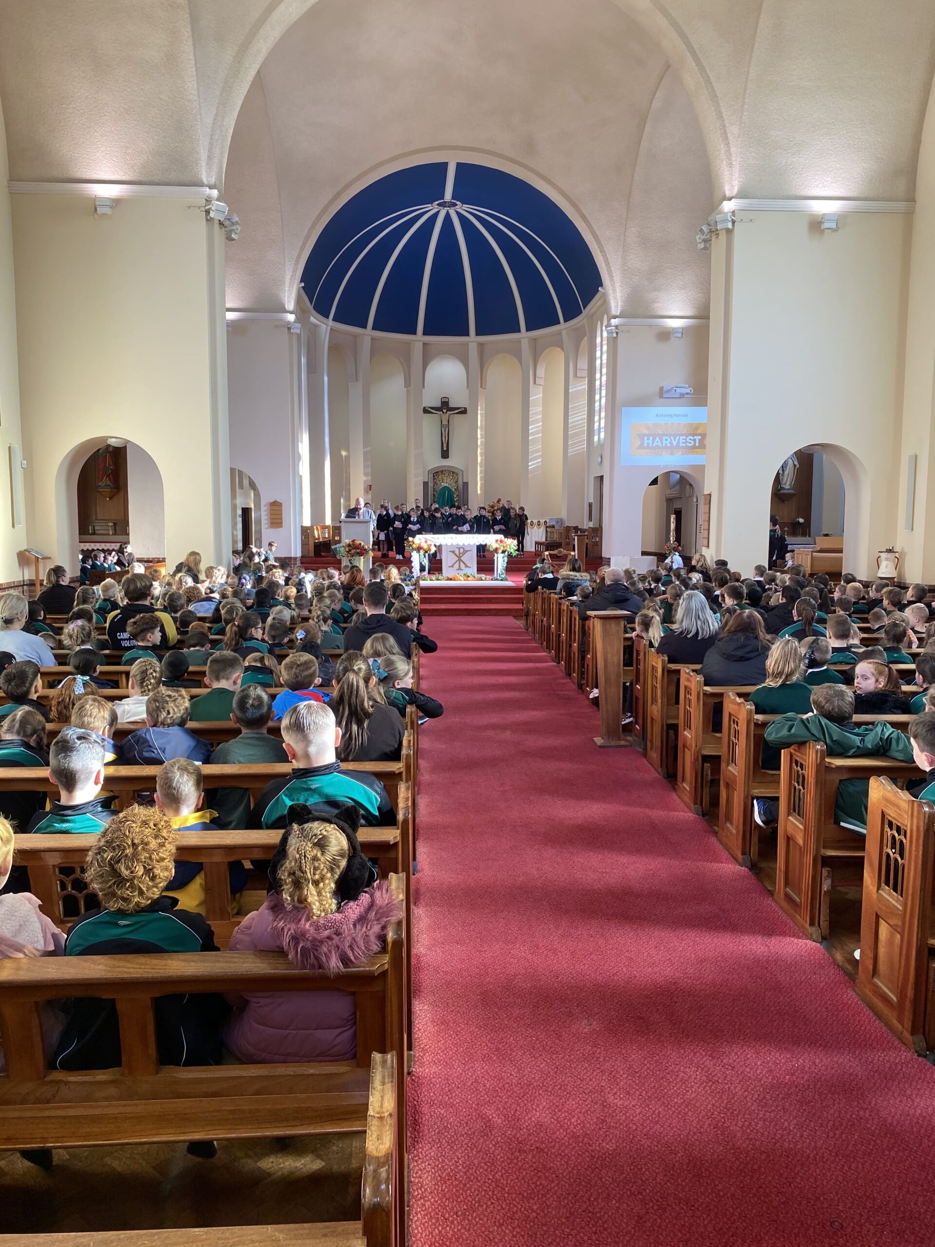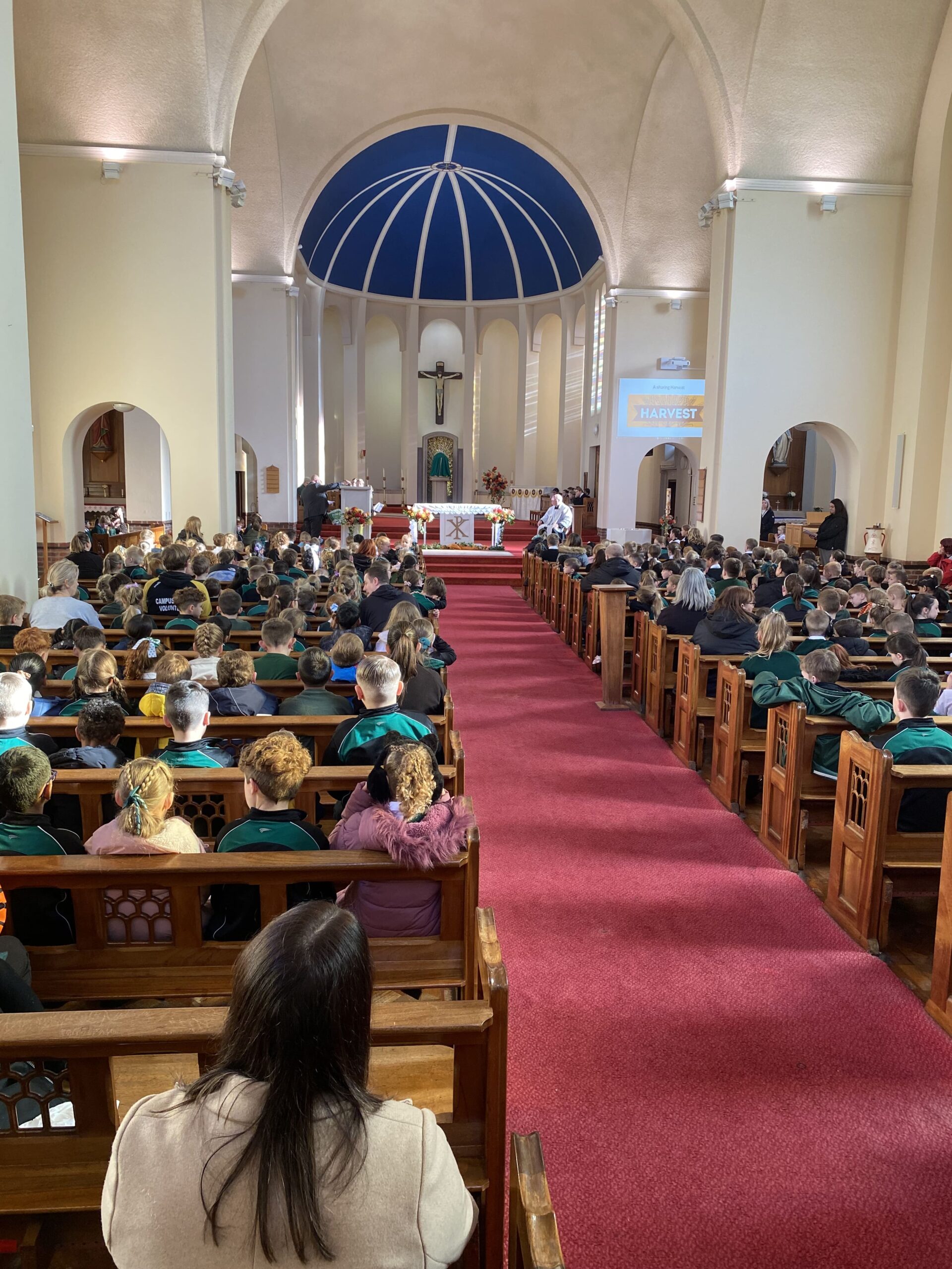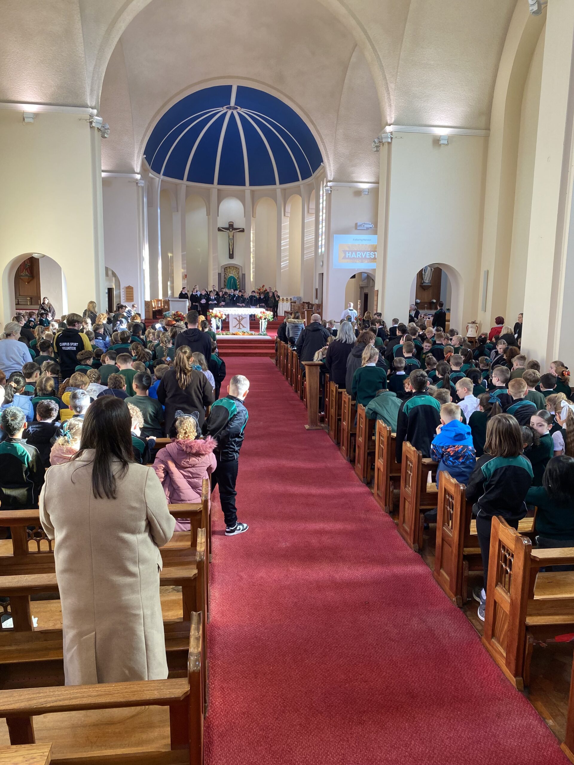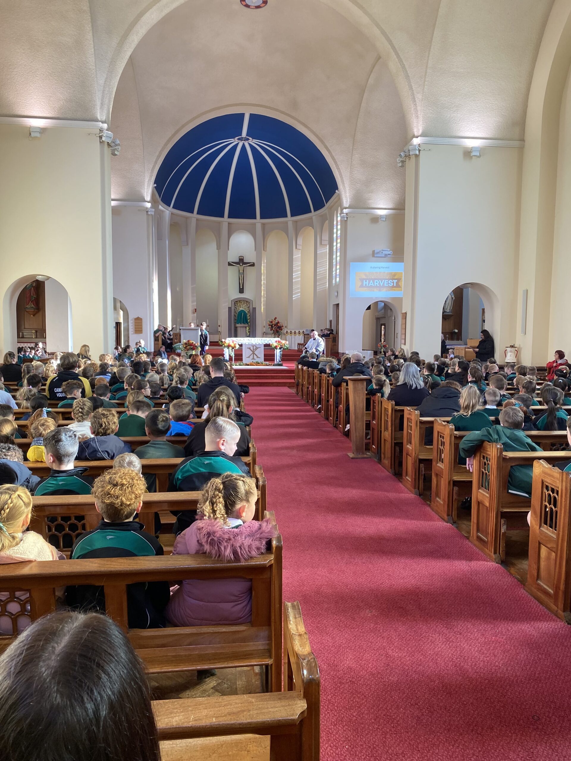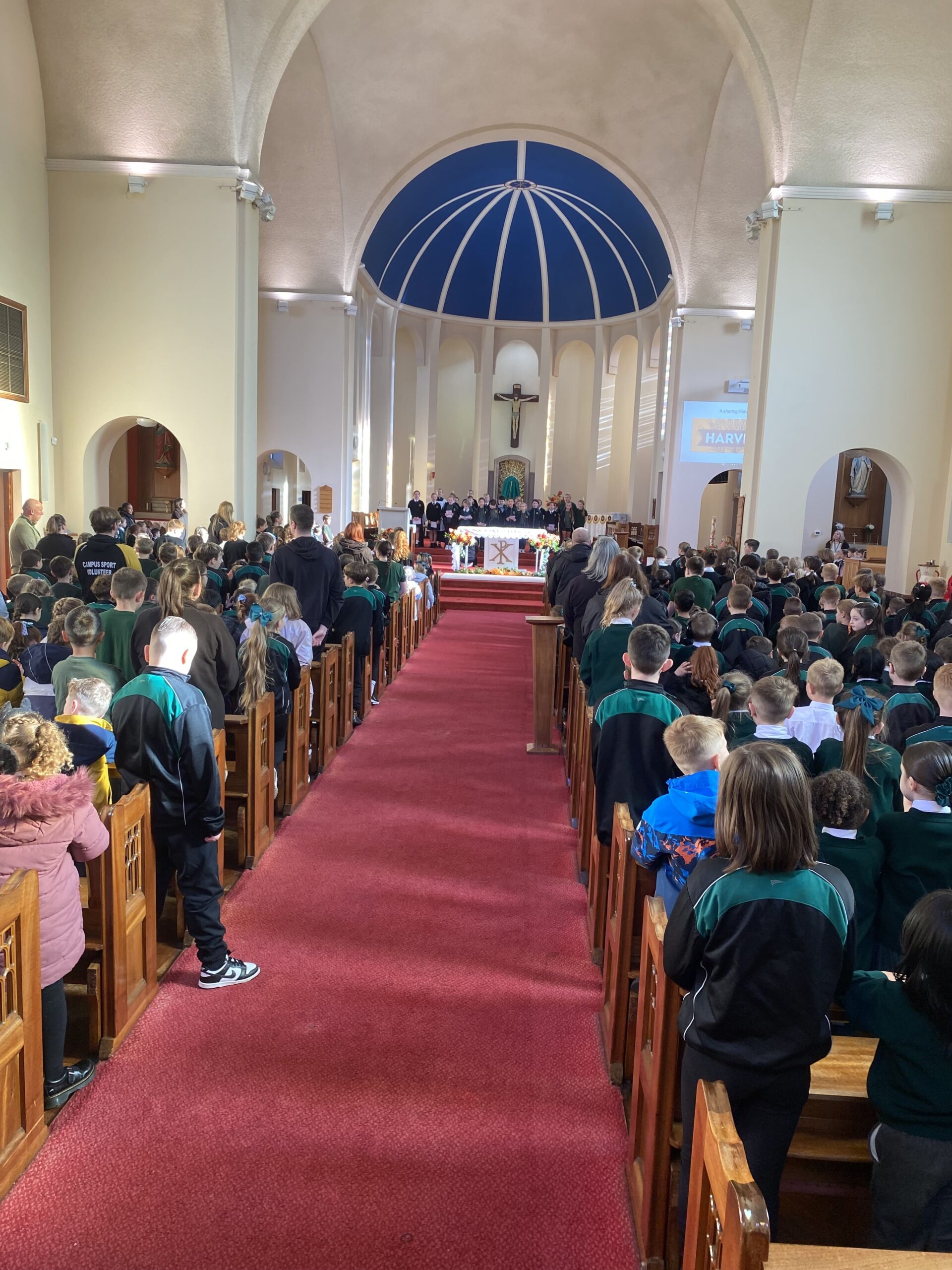 The children from St John Vianney School gathered in church this morning to give thanks at this time of Harvest. They heard the Gospel form St Matthew where Jesus indicates that whenever we feed the hungry, look after the sick, give water to those who are thirsty, we do it to him. Although the children had brought in an enormous amount of produce, it remained in school before it was transported for the needy and poor to the distribution point at Sacred Heart Church.